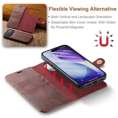 DG MING iPhone 17 Pro Max 2-i-1 Magnet Flip Cover - Rød