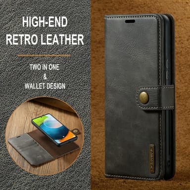 Et læderpungetui med en magnetisk aftagelig inder cover.