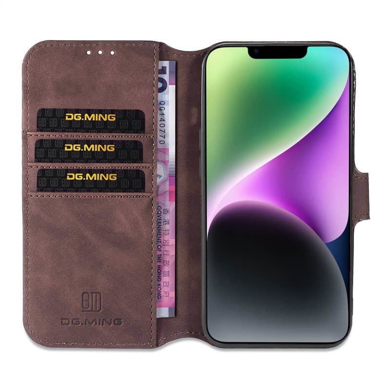 DG-Ming Wallet cover 3-kort Apple iPhone 14 - Coffe