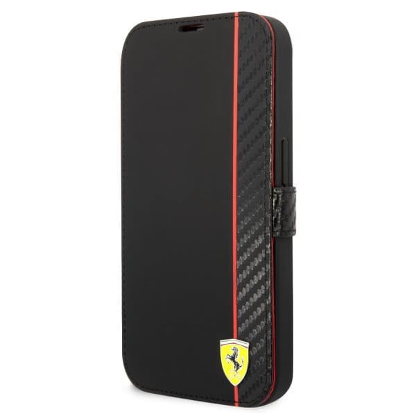 • Ferrari iPhone 14 Pro Etui Carbon Effect Metal Logo Sort