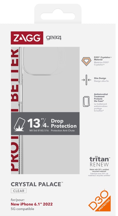 Gear4 Crystal Palace iPhone 14 coveret har et holdbart design, som kan holde til fald på 4 meter. Det gennemsigtige design har antimikrobiel belægning og anti-gulning, så telefonen altid ser fremragende ud. Det er kompatibelt med trådløs opladning.Læs mere om produktet