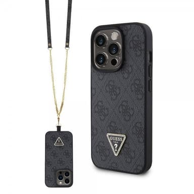 Guess iPhone 15 Pro Cover Metal Logo Strass Crossbody Strap Sort