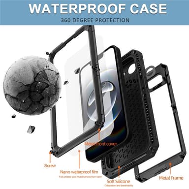 • IP68 Vandtæt Etui til iPhone 16e Metal + Silikone med Skærmbeskytter