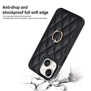 Til iPhone 14 telefontaske PU-læder+TPU-præget rhombusgittermønster Bagcover med ringstativ - sort Konstru eret med TPU-materiale belagt med PU-læder, ridsefast og fingeraftryksfri Rhombus-prægning gitterstruktureret design, delikat og stilfuldt DenLæs mere om produktet