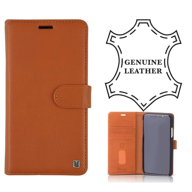 • iPhone X Ægte læder Classic Stand Folio ryg etui Tan