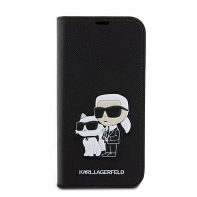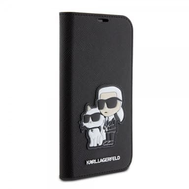 Karl Lagerfeld iPhone 15 Etui NFT Karl & Choupette Patch Saffiano Sort