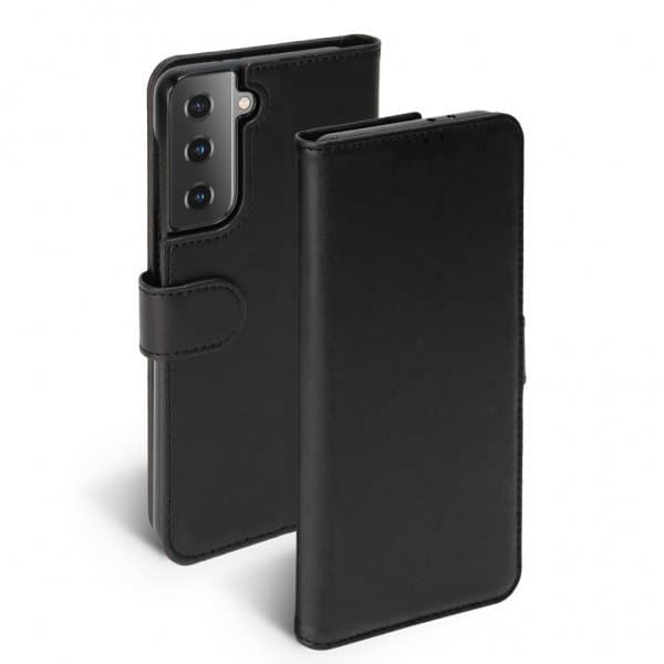 Stativfunktionen kan nemt foldes ud, når man for eksempel vil se på videoer eller tage i mod videosamtaler. Etuiet er fremstillet af vegansk læder.