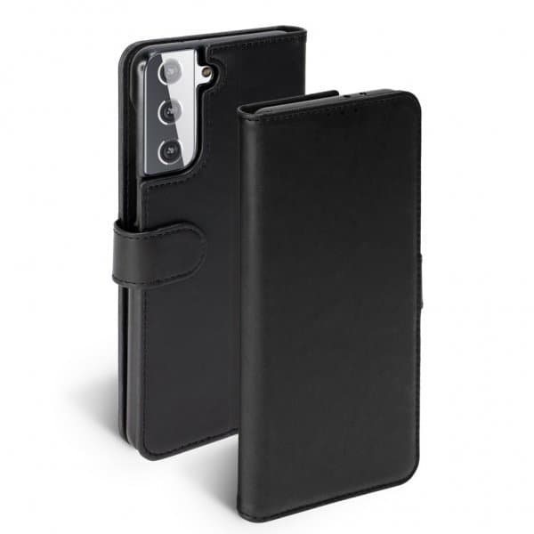 Stativfunktionen kan nemt foldes ud, når man for eksempel vil se på videoer eller tage i mod videosamtaler. Etuiet er fremstillet af vegansk læder.