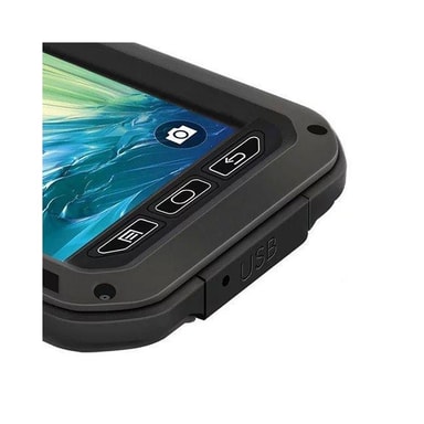 en speciel cover i 3 lag, der er skruet sammen, mobiltelefonen er beskyttet i en stødbestandig silikone vugge.