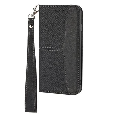 Et sort mobilfoderal med magnetisk funktion og kortholder i PU-læder.