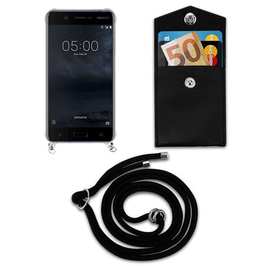 Cadorabo mobiltelefonetui lavet af gennemsigtig TPU silikone med ledning og lille etui til kort og penge