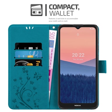 Nokia C21 Pungetui Cover Blomster (Blå)