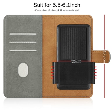 Et særligt highlight er det integrerede kortholder. Det har plads til flere kort, såsom kreditkort, kørekort eller ID-kort, og har desuden et rum til pengesedler. Så kan du ofte lade din tegnebog blive hjemme.
