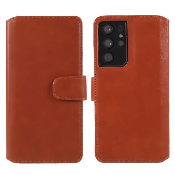 Nordic Covers stilrene tegnebogsetui gør det muligt for at opbevare dine vigtigste kort sammen med en af dagens mest værdifulde ejendele; din mobil. Mobiletui er fremstillet i ægte læder, som får en fin patina over tid og gør etuiet slidstærkt. Med en smarte magnetlukning holdes tegnebogsetuiet lukket, så du slipper for at være urolig for at dine kort falder ud. Dette mobiletui har en smart stativfunktion som sørger for at man kan stille telefonen op i landskabsmode, så man for eksempel kan se film på togrejsen.