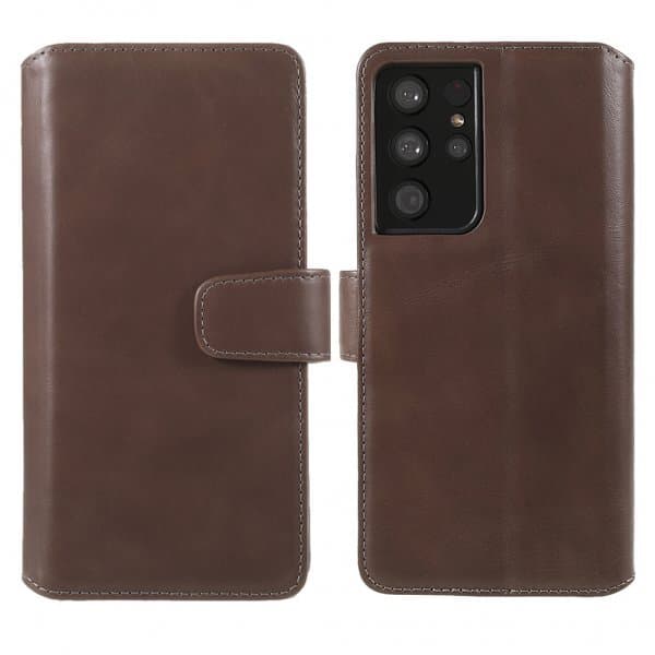 Nordic Covers stilrene tegnebogsetui gør det muligt for at opbevare dine vigtigste kort sammen med en af dagens mest værdifulde ejendele; din mobil. Mobiletui er fremstillet i ægte læder, som får en fin patina over tid og gør etuiet slidstærkt. Med en smarte magnetlukning holdes tegnebogsetuiet lukket, så du slipper for at være urolig for at dine kort falder ud. Dette mobiletui har en smart stativfunktion som sørger for at man kan stille telefonen op i landskabsmode, så man for eksempel kan se film på togrejsen.