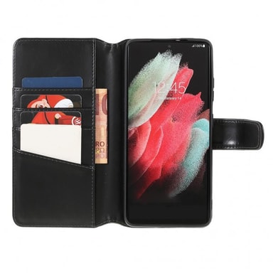 Nordic Covers stilrene tegnebogsetui gør det muligt for at opbevare dine vigtigste kort sammen med en af dagens mest værdifulde ejendele; din mobil. Mobiletui er fremstillet i ægte læder, som får en fin patina over tid og gør etuiet slidstærkt. Med en smarte magnetlukning holdes tegnebogsetuiet lukket, så du slipper for at være urolig for at dine kort falder ud. Dette mobiletui har en smart stativfunktion som sørger for at man kan stille telefonen op i landskabsmode, så man for eksempel kan se film på togrejsen.