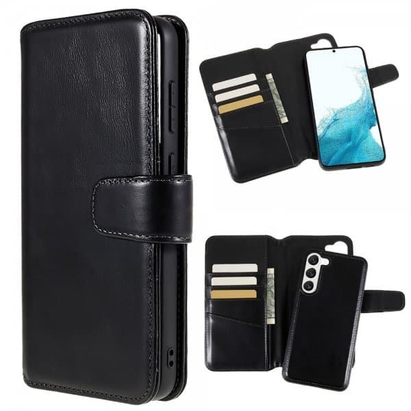Et lommeboketui med et magnetisk avtakbart deksel, slik at du enkelt kan løsne telefonen fra etuiet