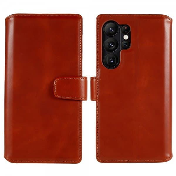 Nordic Covers stilrene tegnebogsetui gør det muligt for at opbevare dine vigtigste kort sammen med en af dagens mest værdifulde ejendele; din mobil. Mobiletui er fremstillet i ægte læder, som får en fin patina over tid og gør etuiet slidstærkt. Med en smarte magnetlukning holdes tegnebogsetuiet lukket, så du slipper for at være urolig for at dine kort falder ud. Dette mobiletui har en smart stativfunktion som sørger for at man kan stille telefonen op i landskabsmode, så man for eksempel kan se film på togrejsen.