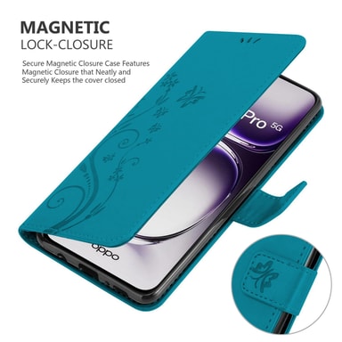 Oppo Reno 12 Pro Pungetui Cover Blomster (Blå)