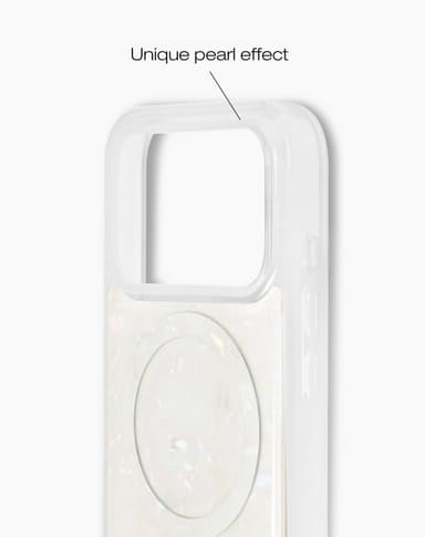 Løft din telefon med luksusen af et perlemorscover. Dette design fremhæver den unikke glans fra en imiteret perle, samtidig med at det giver et ekstra lag beskyttelse til din enhed.Læs mere om produktet