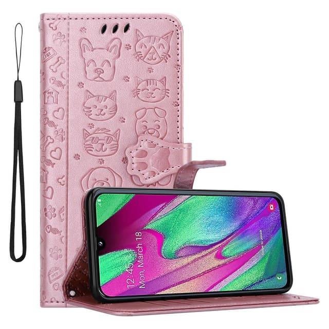 DESIGN: Etuiet i imiteret læder i et sødt design tilbyder kortpladser og et andet rum til kontanter. Med stand-funktionen kan du nemt justere din smartphone, som du ønsker at se film eller afholde videokonferencer.