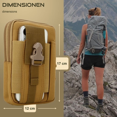 Cadorabos taktiske mobiltaske i camouflage er perfekt til udendørsentusiaster. Med en højde på 185 mm og en bredde på 125 mm giver den plads til smartphones på op til 6,7 tommer. Den er ideel til vandreture, camping, jogging og andre udendørs aktiviteter og holder dine vigtigste ting sikre og lige ved hånden.