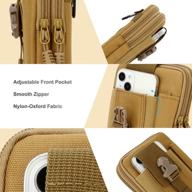 Cadorabos taktiske mobiltaske i camouflage er perfekt til udendørsentusiaster. Med en højde på 185 mm og en bredde på 125 mm giver den plads til smartphones på op til 6,7 tommer. Den er ideel til vandreture, camping, jogging og andre udendørs aktiviteter og holder dine vigtigste ting sikre og lige ved hånden.