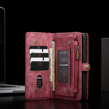 Lavet af ægte delt læder i retrostil + TPU + plastmaterialer, tegnebogsetui har høj kvalitet og uklagelighed. Aftageligt 2-i-1-design, læderbetræk og indvendigt læderbelagt PC TPU-hybridtaske absorberer sammen af stærk magnetisme. Flere kortpladser er designet til at bringe dine kreditkort og buskort bekvemt. Med kontantrum med lynlåslukning kan du bære nogle penge eller din øretelefon sikkert med din telefon. Magnetisk lukning og snap-fastgørelse tilføjer det sikre niveau. Beskyt din telefon mod daglige skader og bær dine ejendele med stil.
