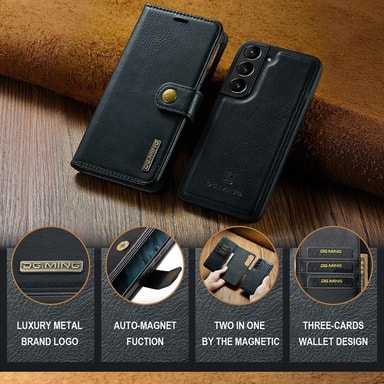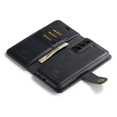 DG.MING Aftagelig 2-i-1 delt læderpung med fuld beskyttelse Shell TPU-indvendig telefontaske til Samsung Galaxy S22+ - Sort