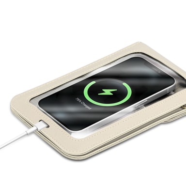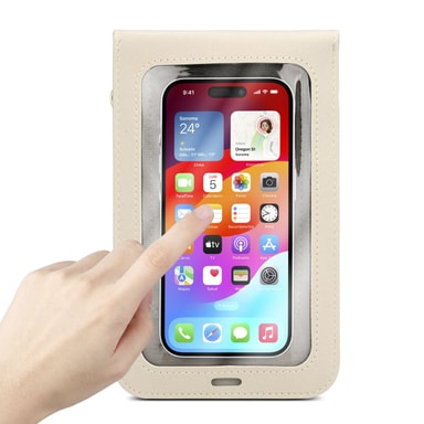 Det lille mobiletui med 2 ekstra rum til kort og kontanter er perfekt til hverdagsbrug. Det gennemsigtige touch-vindue gør det nemt at bruge. Den lange bærestrop er også justerbar og aftagelig.