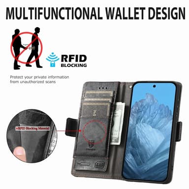 CASENEO 002 Premium kombinerar elegant design med praktiska funktioner. Tillverkat i högkvalitativt PU-läder och TPU för hållbarhet och ett sofistikerat utseende. Den klassiska business-stilen med retro-design ger en professionell look. Plånboksdesignen inkluderar kortplatser och kontantfack samt förvaring för SIM-kort och SIM-kortsnål. Med RFID-skydd i kortplatsen förhindras obehörig åtkomst till din privata information. Det fällbara stativet underlättar videotittande, och den dubbla magnetiska stängningen ger säker förslutning. Dessutom finns ett reserverat hål för samtalsmottagning med stängt fodral.