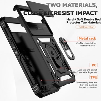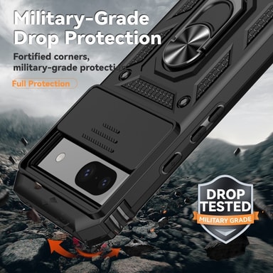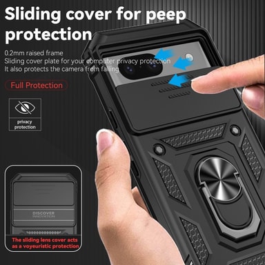 SKALO Google Pixel 8a Armor Hybrid Metal Ring Camera Slider - Sort