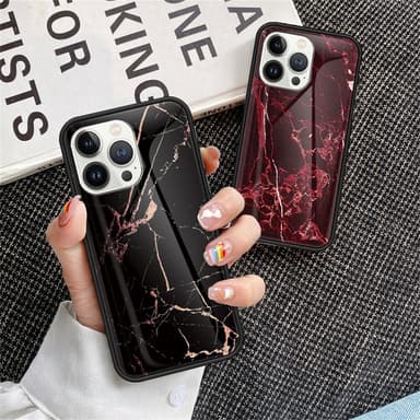 En slank TPU-cover med stilfuldt print og en bagside af hærdet glas for maksimal følelse.