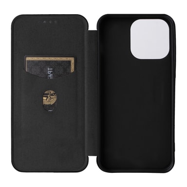 Pungetui med kulfiberlook og ekstra blødt stof på indersiden.En kortplads indeniIndvendig cover af TPUMagnetisk lås med små indbyggede magneterPasser til: iPhone 16 Pro MaxLæs mere om produktet