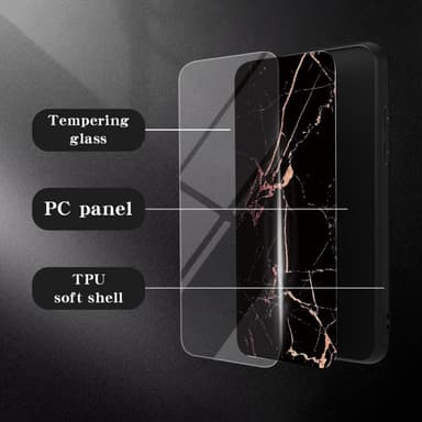 En slank TPU-cover med stilfuldt print og en bagside af hærdet glas for maksimal følelse.