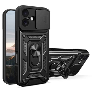 SKALO iPhone 17 Armor Metallring Kameraslider Cover - Sort