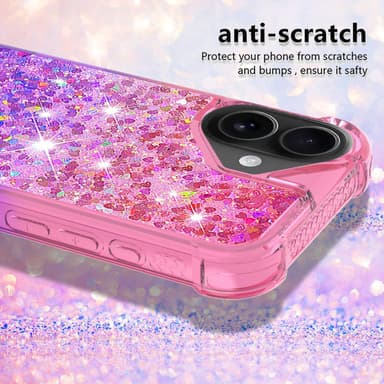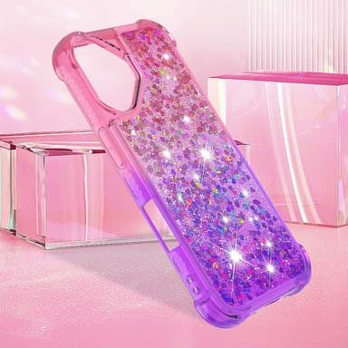 Forbedret beskyttelse mod stød og fald. Flydende glimmer fremhæver din enheds skønhed. Beskytter kameraet mod ridser. Stødabsorberende hjørner mindsker risikoen for skader. Komfortabelt, slankt design.