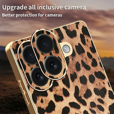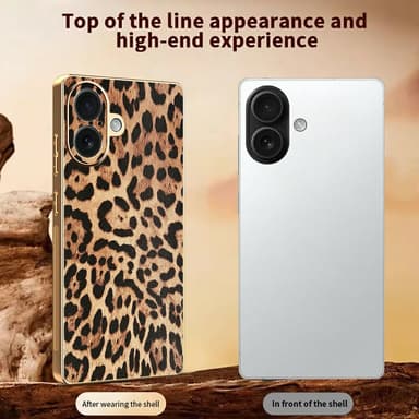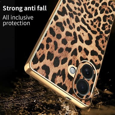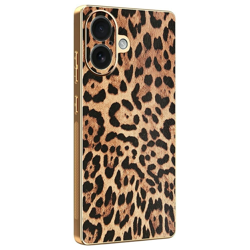 Dette mobilcover har et markant leopardmønster med elegante guldelektropladerede kanter, som giver en stilfuld og luksuriøs æstetik.Læs mere om produktet