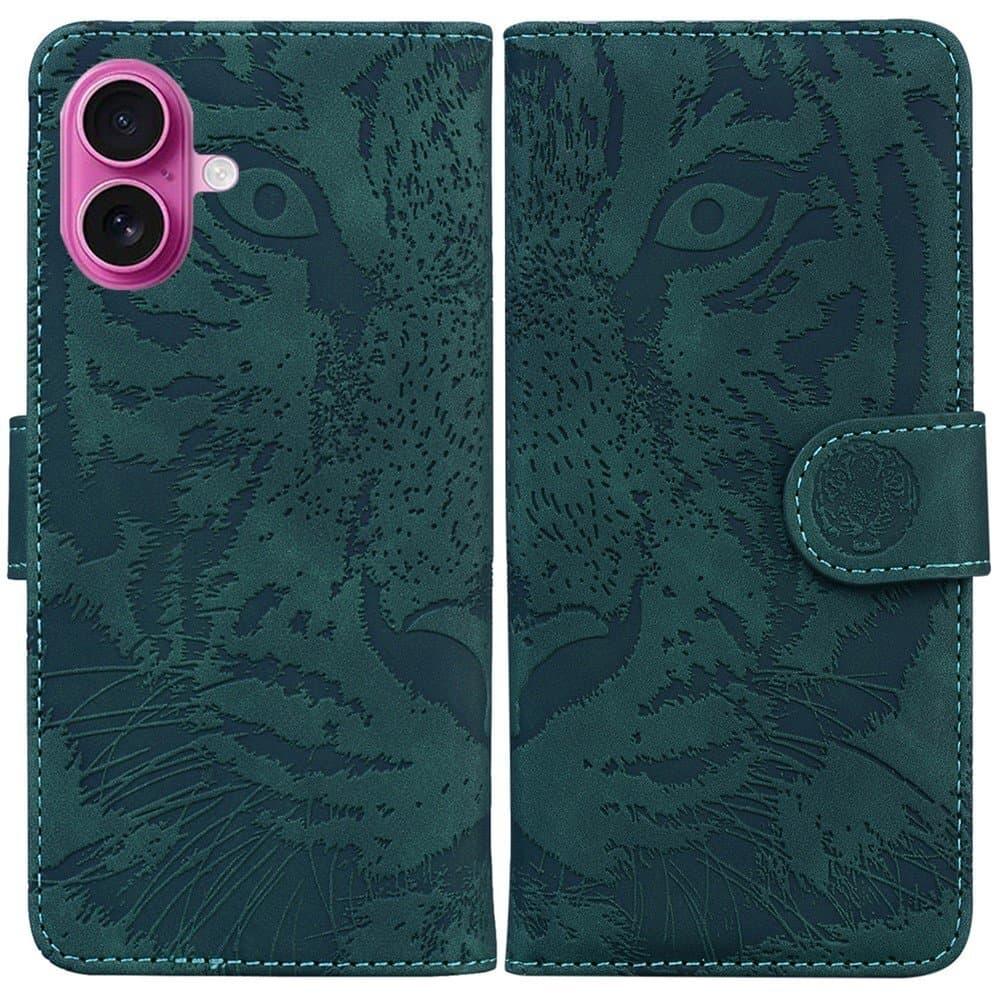 SKALO iPhone 17 Præget Tiger Flip Cover - Grøn