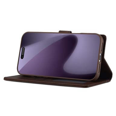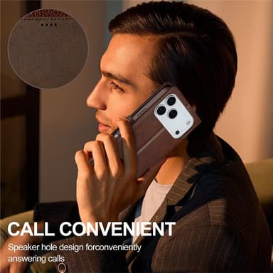 Dette stilfulde cover er fremstillet af PU-læder med kalvestruktur og TPU-materiale, hvilket giver en blød fornemmelse og elegant finish. Det giver 360 graders beskyttelse og kombinerer funktionalitet med æstetik. Med to kortlommer, en fotolomme og et kontantrum kan du lade pungen blive hjemme. Det foldbare stativ giver justerbare vinkler til håndfri visning, og den stærke magnetlukning holder telefon, penge og kort sikkert på plads. Et reserveret hul til højtaleren gør det muligt at tale med coveret lukket.