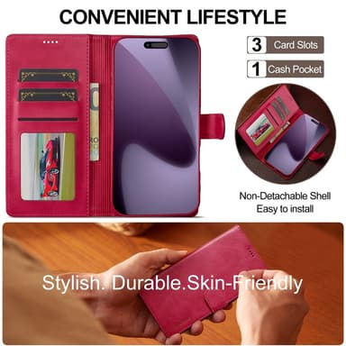 SKALO iPhone 17 Pro Max LC.IMEEKE Premium PU-læder Flip Cover - Cerise