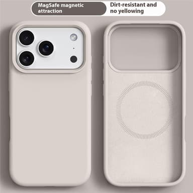 Dette tynde silikonecover kombinerer et stilrent design med praktisk funktionalitet. Med indbyggede stærke magneter er det fuldt kompatibelt med MagSafe-opladning, hvilket gør trådløs opladning nem og effektiv uden at skulle fjerne coveret. Det højkvalitets, bløde flydende silikone giver en hudvenlig fornemmelse og et sikkert greb, mens det stødabsorberende PC-lag beskytter din telefon mod slag. En blød fiberforing beskytter mod ridser og absorberer stød. Coveret er desuden modstandsdygtigt over for olie, snavs og fingeraftryk, hvilket holder din telefon ren. Den store kameratudskæring beskytter kameraet uden at forstyrre fotograferingen.