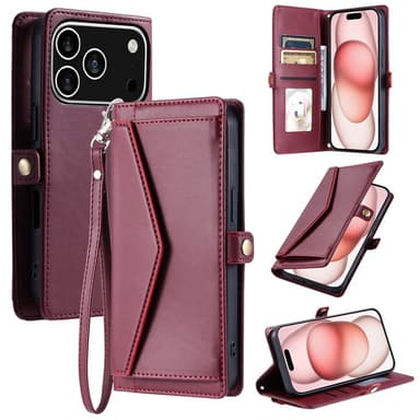 SKALO iPhone 17 Pro PU-Læder Kuvert Flip Cover - Rød
