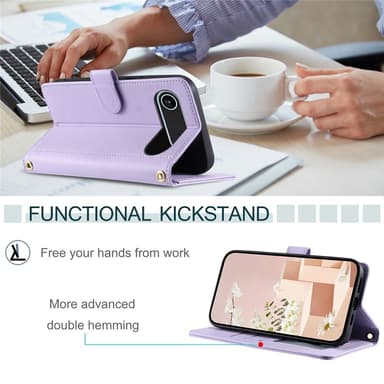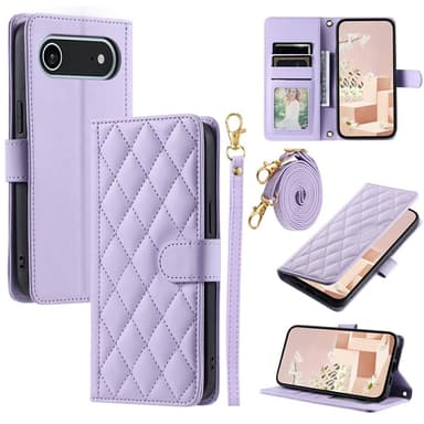 Oplev elegance og funktion med dette mobilcover. Den quiltede overflade giver en sofistikeret følelse. Coveret beskytter din telefon effektivt mod skader. Nyd håndfri visning med det indbyggede stativ. Du bærer nemt coveret med håndledsremmen eller skulderremmen. Alt hvad du behøver, får plads sikkert organiseret.