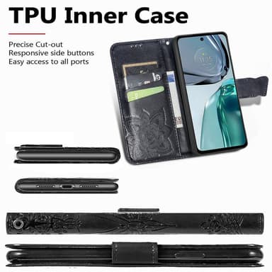 SKALO Motorola Moto G62 5G Mandala Butterfly Flip Cover - Sort