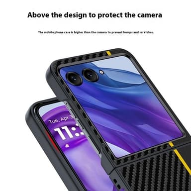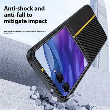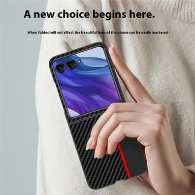 Carbon Fiber Flip er et elegant og funktionelt mobilcover med en ultratynd profil, der bevarer telefonens slanke udseende og samtidig giver stærk beskyttelse. Den stilfulde kulfibertekstur forbedrer grebet og mindsker risikoen for at tabe telefonen. Fremstillet af højkvalitets PC-materiale for langvarig holdbarhed. Den foldbare struktur gør det nemt at opbevare og tage med, ideel til brug på farten. Med fuld dækning beskyttes din enhed mod ridser, stød og dagligt slid. Præcise udskæringer sikrer nem adgang til alle funktioner.