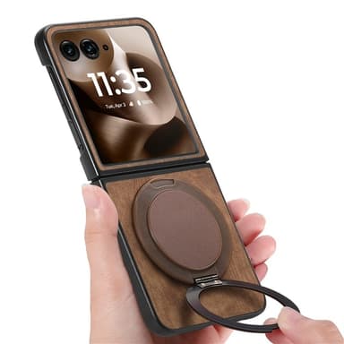 SKALO Motorola Razr 60 Ultra 5G D21 Kickstand Retro PU-Læder Cover - Brun