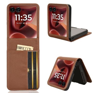 SKALO Motorola Razr 60 Ultra 5G PU-læder Flip Kortholder Cover - Brun