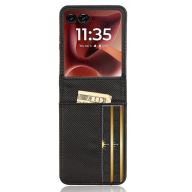 Denne kortholder er fremstillet af PU-læder med kulfibertekstur og PC-materiale, hvilket giver en behagelig følelse i hånden. Den har kortpladser, så du nemt kan opbevare dine vigtigste kort. Præcise udskæringer sikrer nem adgang til alle porte og funktioner. Det integrerede design beskytter telefonen mod daglige stød og skader. Den foldbare konstruktion gør den nem at bruge sammen med din telefon.