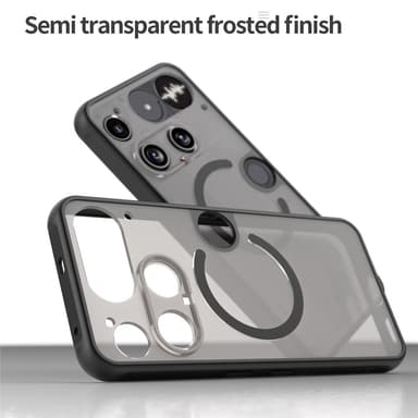 Matt Hybrid-coveret giver optimal beskyttelse og funktionalitet. Det robuste design, fremstillet af højkvalitets PC + TPU-materialer, giver et behageligt greb. Den magnetiske bagside muliggør problemfri forbindelse til magnetisk tilbehør. De præcise udskæringer sikrer fuld funktionalitet.